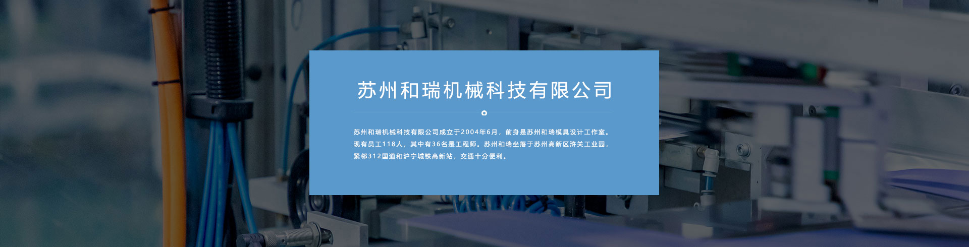 蘇州和瑞機械有限公司成立于2004年6月,前身是蘇州和瑞模具設計工作室。現有員工118人,其中有36名是工程師。蘇州和瑞坐落于蘇州高新區(qū)滸關工業(yè)園,緊鄰312國道和滬寧城鐵高新站,交通十分便利。